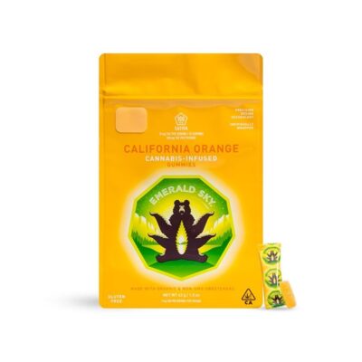 When you need a daytime pick-me-up, Emerald Sky’s California Orange Gummies deliver the right kick. Infused with flavorless Sativa THC, these chewy, citrus-flavored treats will help you start your day on the right foot. Each bite is individually wrapped, perfect to take with you anywhere. 10 servings per package. Each serving contains 10 mg of THC, using a proprietary dosing technology. Ingredients: Sugar, non-Gmo Corn Syrup, Gelatin, Water, Sorbitol, Citric Acid, Malic Acid, Palm Kernel Oil, Carnauba Wax, Natural Orange Flavor, Beta Carotene. (License No. CDPH-10002851)