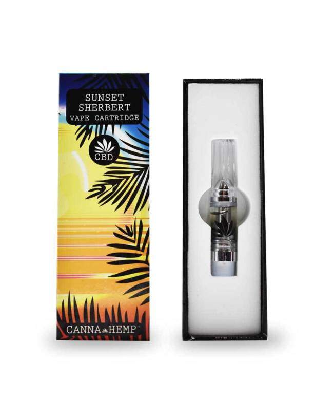 100 percent purely extracted CBD oil combines with real Sunset Sherbet terpenes in this THC-free vape cartridge from Canna Help. The organic Sunset Sherbet CBD Vape Cartridge offers up a refreshing and sweet citrus flavor and aroma.